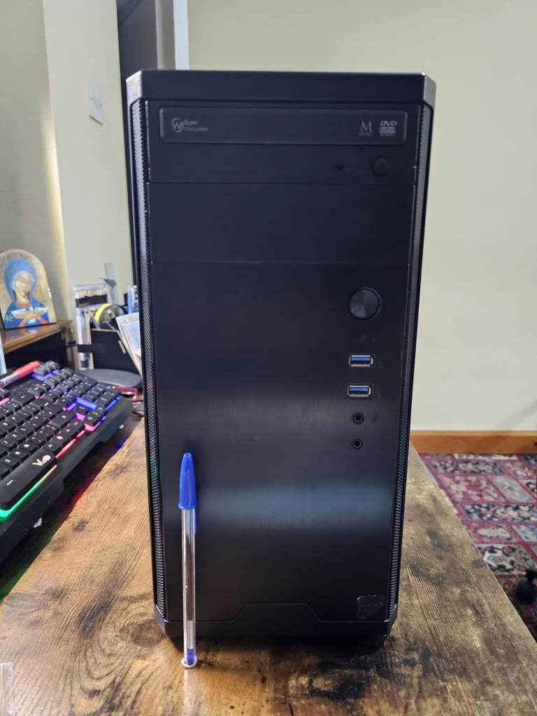 Workstation (£15) : Generic micro-ATX tower (compact size: 38cm depth, 17.5cm width, 35cm height) + Optical drive: DVD-ROM