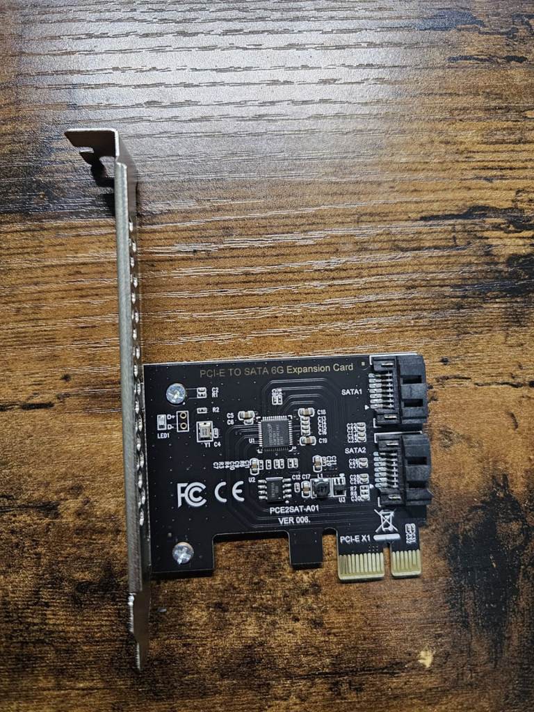 PCI-E to SATA Expansion Card (£5): adapter to insert on motherboard to add additional SATA ports