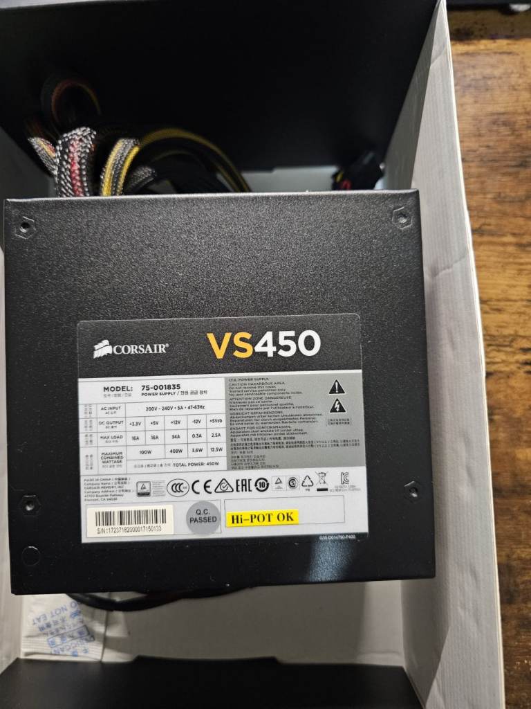 PSU (£30): Corsair VS450 (cleaned and tested working)