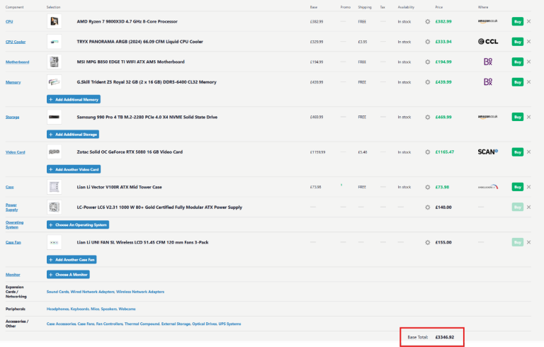I have paired this excellent CPU with a fantastic Nvidia 50 Series GPU, the stunning Zotac RTX 5080 16GB in white. The RTX 5080 is a monstrous 1440P / 4K capable gaming GPU that will handle all of the latest titles.