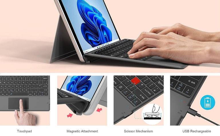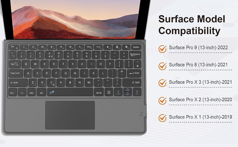 This is an equivalent of the Microsoft Type Cover keyboard for the Surface Pro 8, Pro 9, or Pro X 3/2/1. I use one myself with my Surface Pro 9 and it works fantastically well (despite costing a fraction of what Microsoft are selling theirs for).