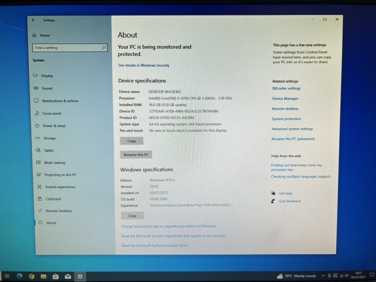 Intel core i7- 8700 @ 3.20Ghz x 6 Core And x 12 Threads