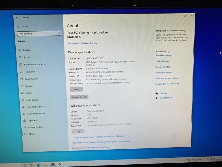 AMD Ryzen 5 Pro 3350G @3.60Ghz x 4cores and 8 X Threads