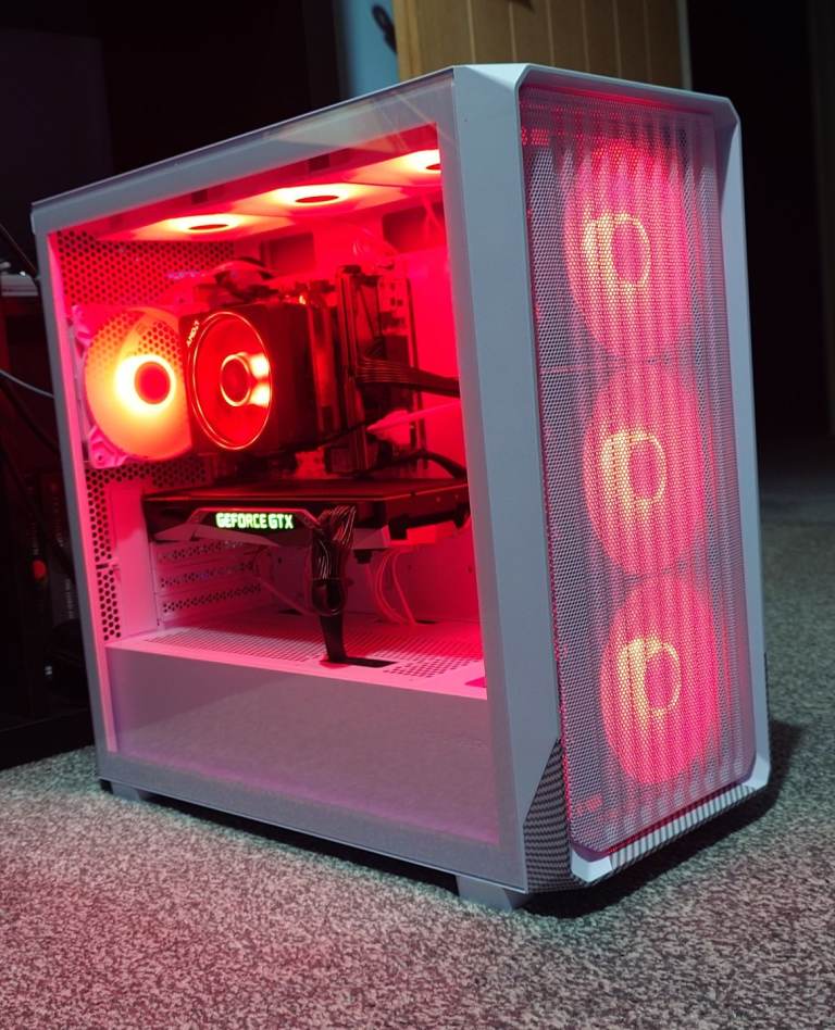 This is an amazingly fast and cool custom gaming computer. It has 7 white argb fans. Cooling the AMD Ryzen 5 3600 is the wraith prism CPU cooler with rgb lighting.