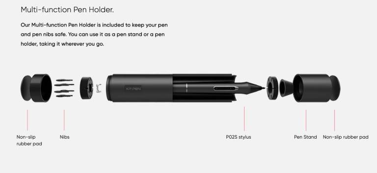 • The sturdy, adjustable, and ergonomically designed stand prevents shaking and sliding, providing a comfortable drawing experience. It can also be attached to a 75x75 mm Vesa mount.