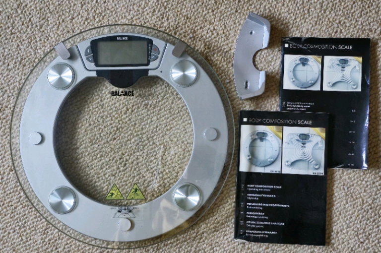 Biometrics scales, very good condition, manuals included, removable display, bracket to hold display, tells you your fat , muscle mass, BMI etc