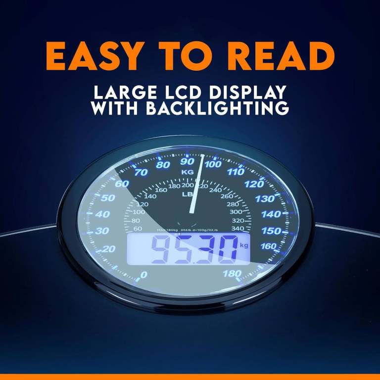 EXTRA WIDE SCALE WITH TEMPERED GLASS: Experience the luxury of an extra-wide platform crafted with premium tempered glass. Designed to accommodate users with larger feet, including those with shoe sizes up to UK Men's size 10.5, our scale offers both style and substance for your weighing needs.