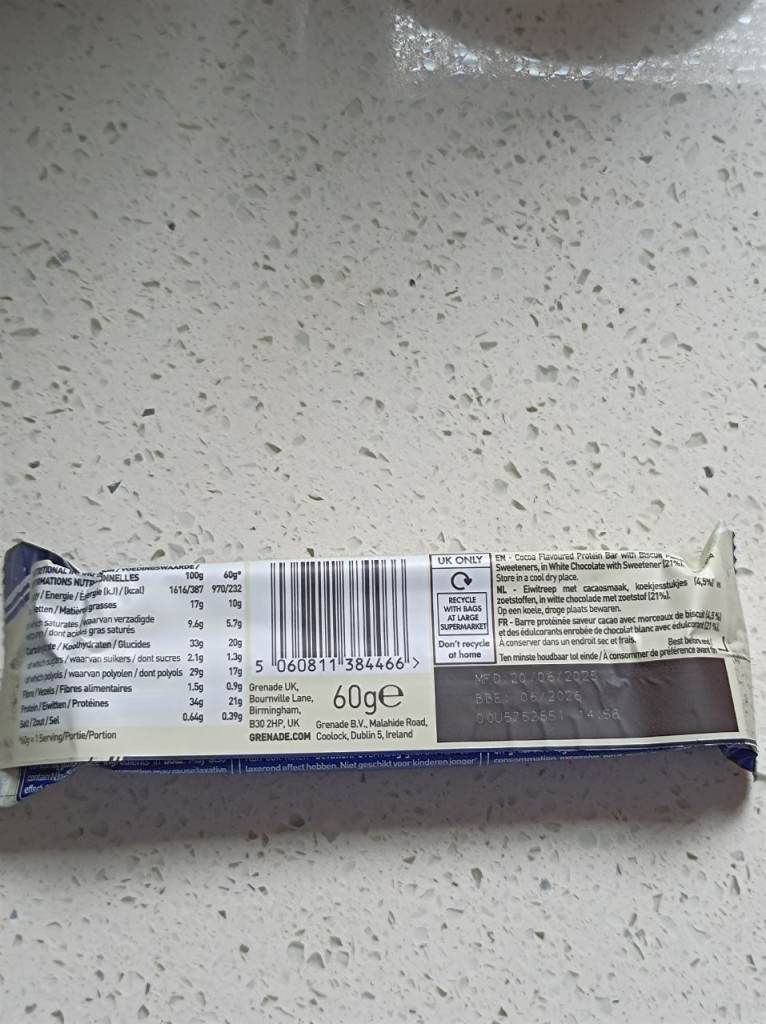 From grenade brand. Oreo white flavour. 11 x 60 g.