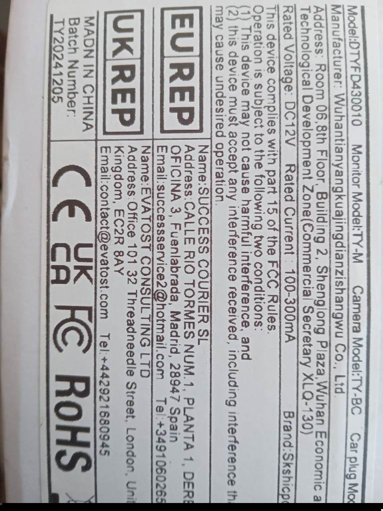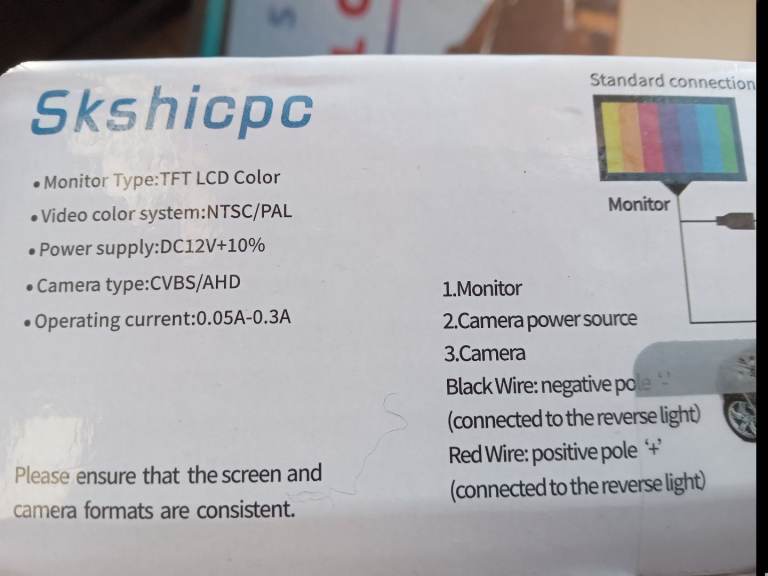 Temu Skshicpc car back up camera system unfitted and unused due to illness