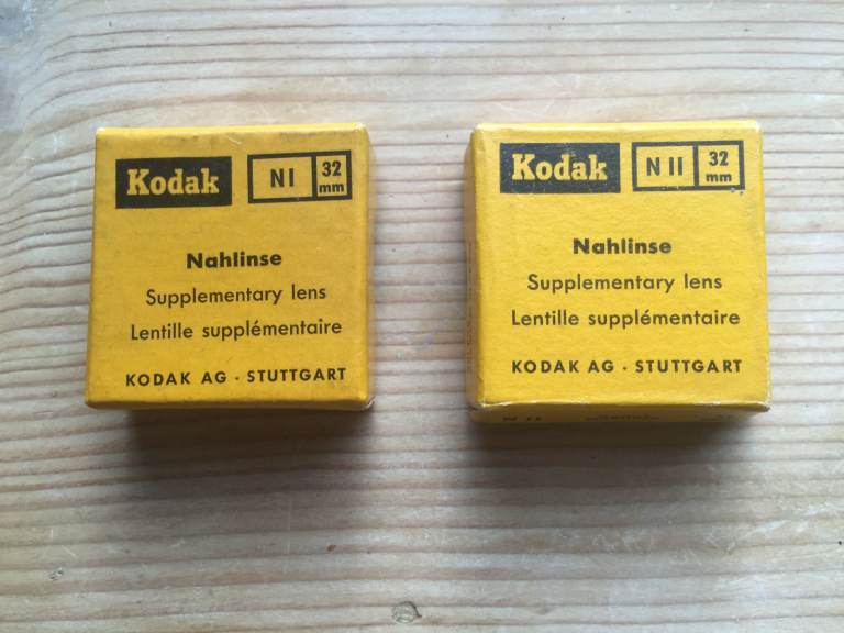 Kodak N1 and Kodak N11 supplementary close up lenses in original boxes with original instruction booklet. One box has a loose lid.