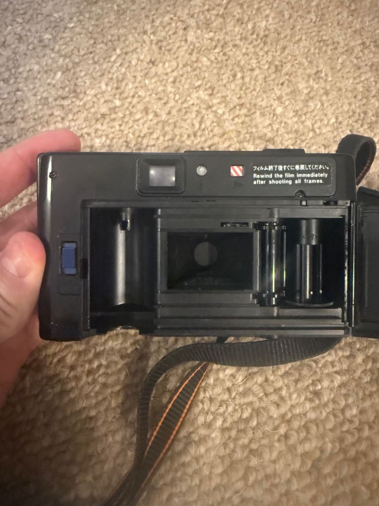 Vintage Canon AF35M 35mm film camera with 38mm f/2.8 Canon lens. Classic early autofocus point-and-shoot from the late 1970s. Camera is in good cosmetic condition and the flash works. Film compartment is clean and opens/closes properly. Strap included. Great camera for film photography collectors or anyone wanting a simple vintage point-and-shoot.