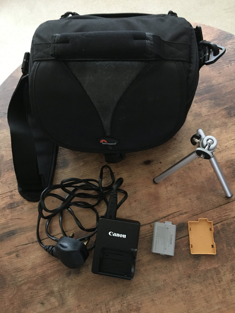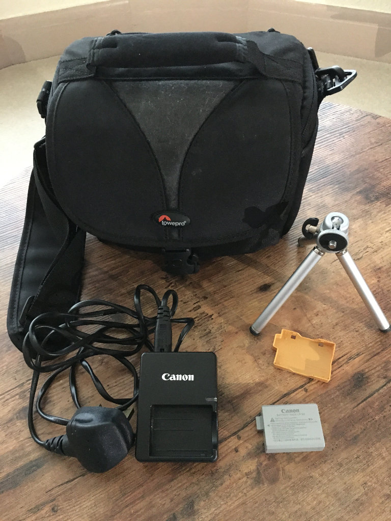 Zoom lens EF-518-55MM. Digital filter 52mm. Battery. Strap. Charger. Mini tripod. USB cable. Carry case multiple pockets.