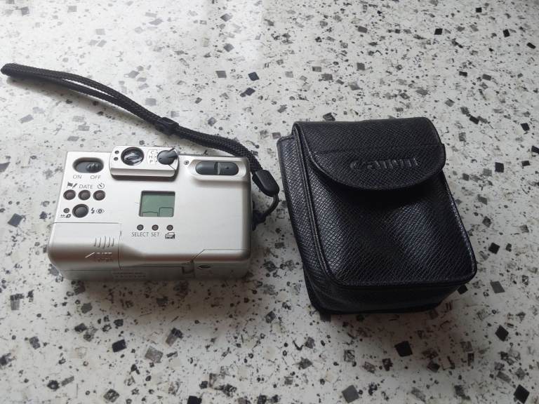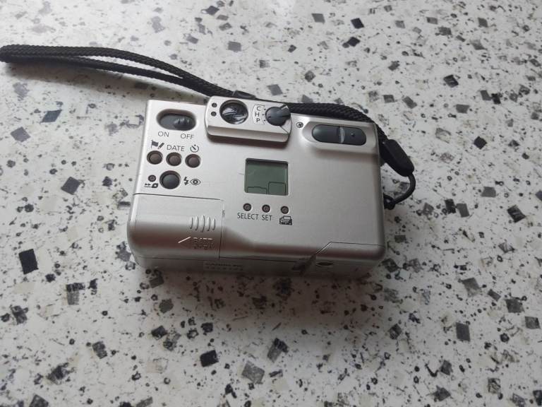 COMPLETE WITH WRIST STRAP AND CASE. BUILT IN FLASH AND DIGITAL ZOOM X 4. TAKES 1 X CR2 BATTERY, NOT INCLUDED. MANUAL INCLUDED.