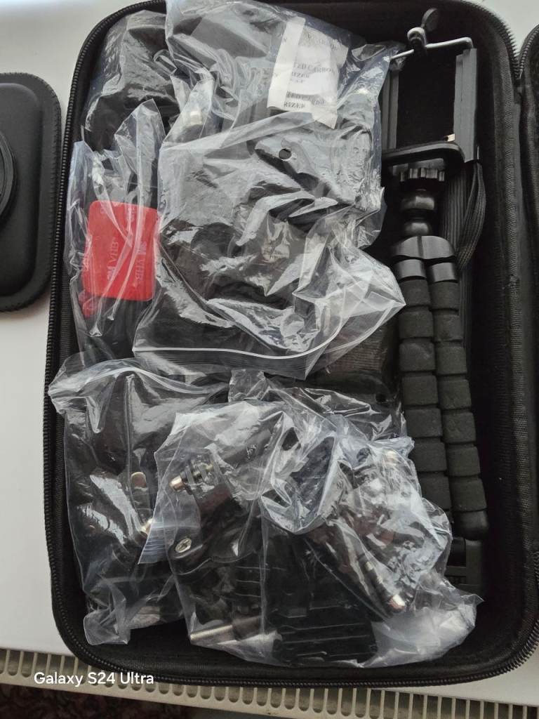 Go pro styled action camera with accessories. Comes with two batteries as standard, but now has two more spare batteries plus separate charger pack. Very good condition.