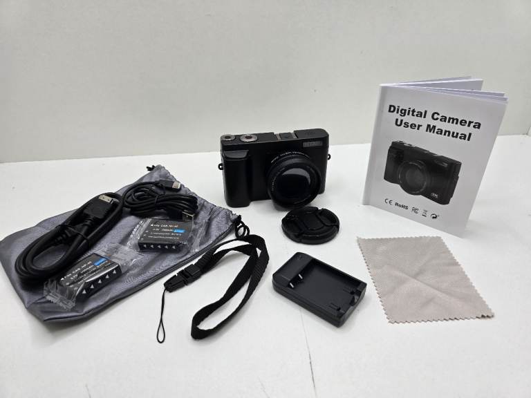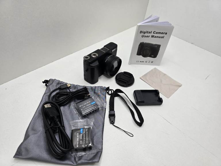-Comes with 2 batteries lens cap, cables cloth, carry case & original box