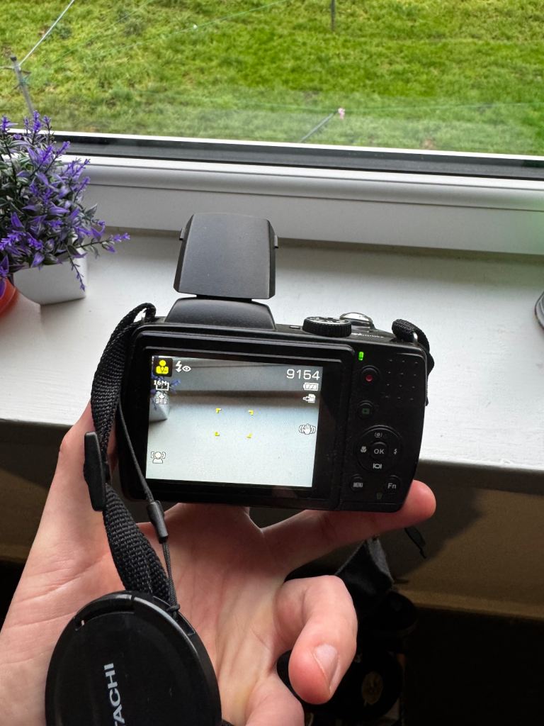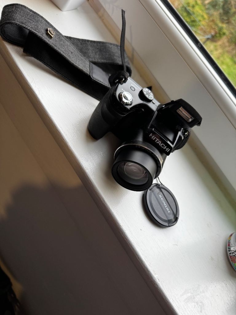 Hitachi HBC161E 21x optical zoom 16 megapixel 4.5~94.5mm lens. Comes with brand new strap 64gb Kodak memory card. Very good condition lens and features perfect for a starting up camera