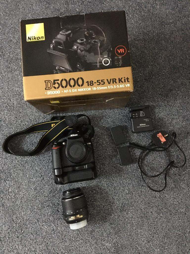 Nikon D5000 DSLR camera in very good condition with an extra battery grip