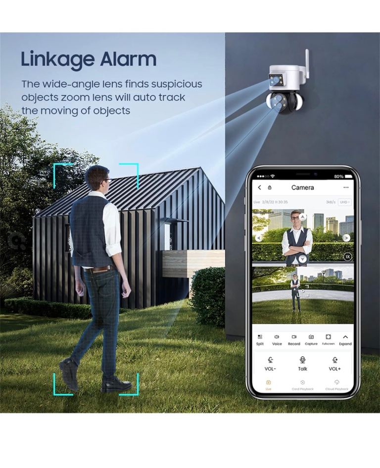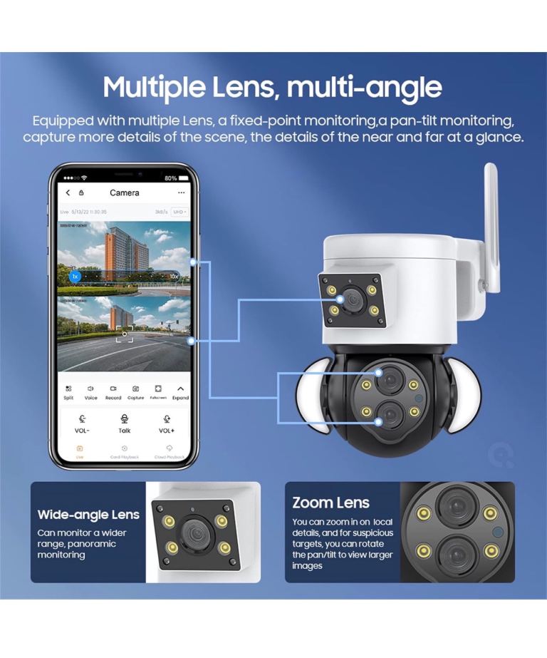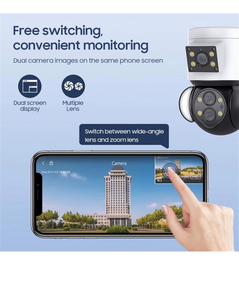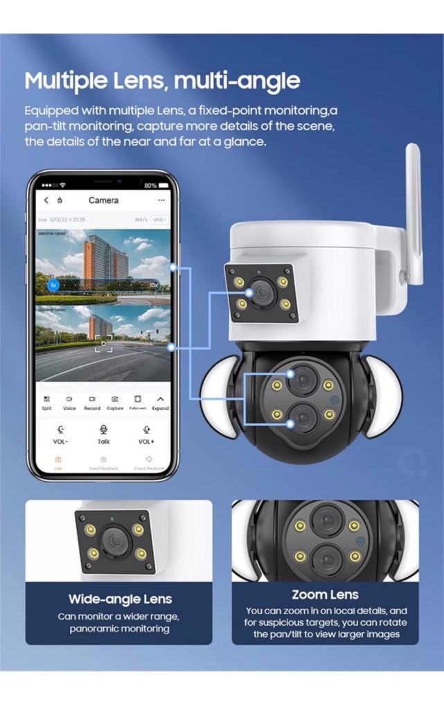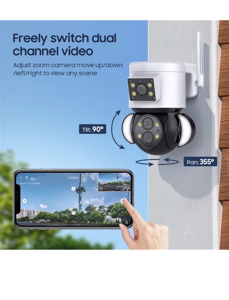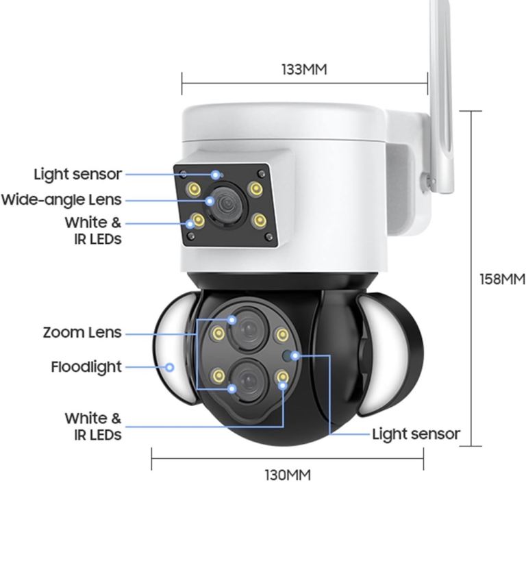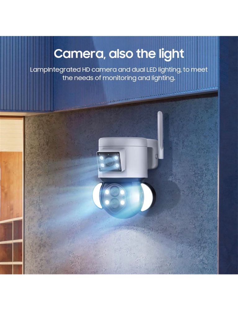 With white light lamp, dual light source design, fine craftsmanship. With three night vision modes.IR Night Vision ,The IR light turns on and the picture becomes black and white.Color Night Vision ,The white light turns on and the screen changes to color,Smart Night Vision,When a moving object is detected, the screen will automatically switch to color