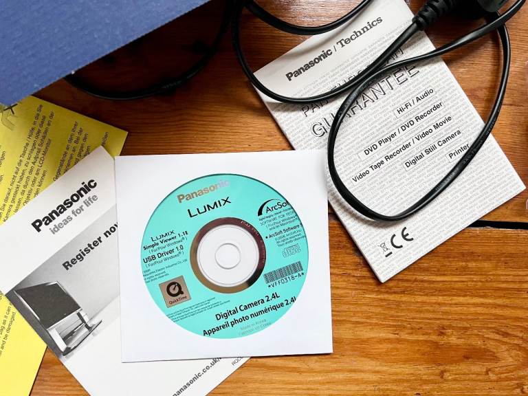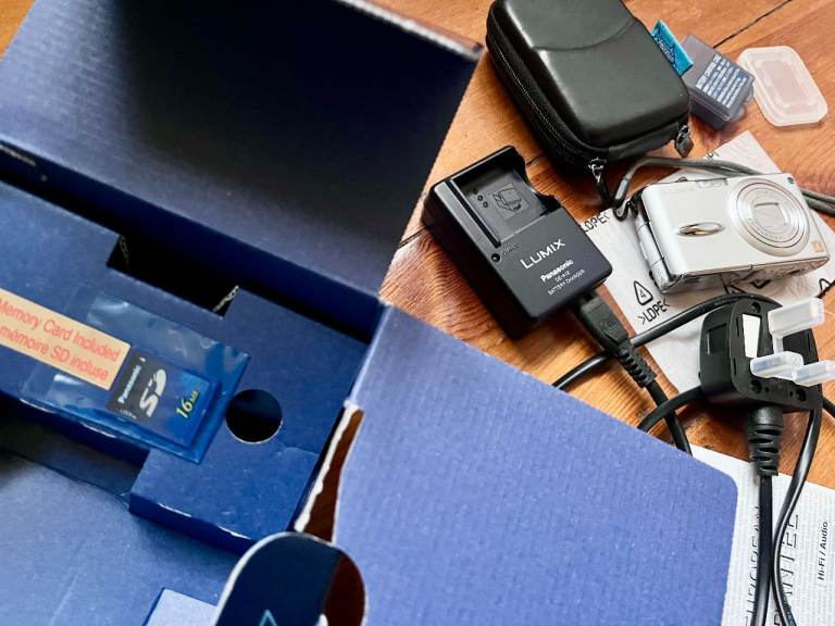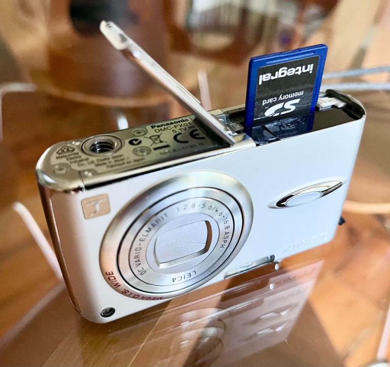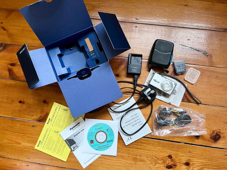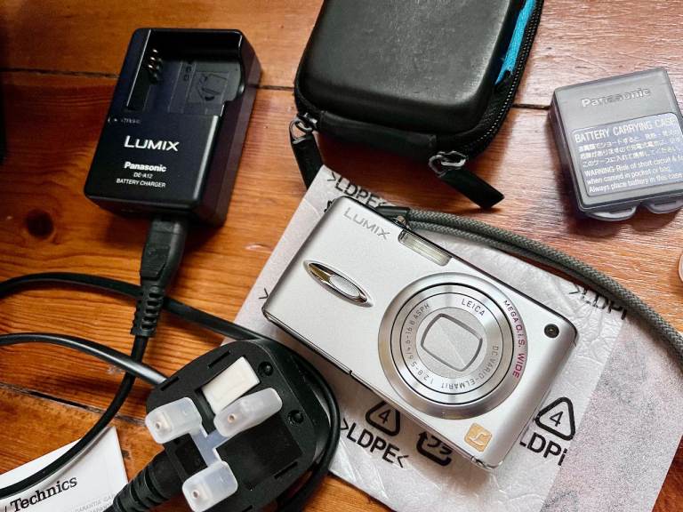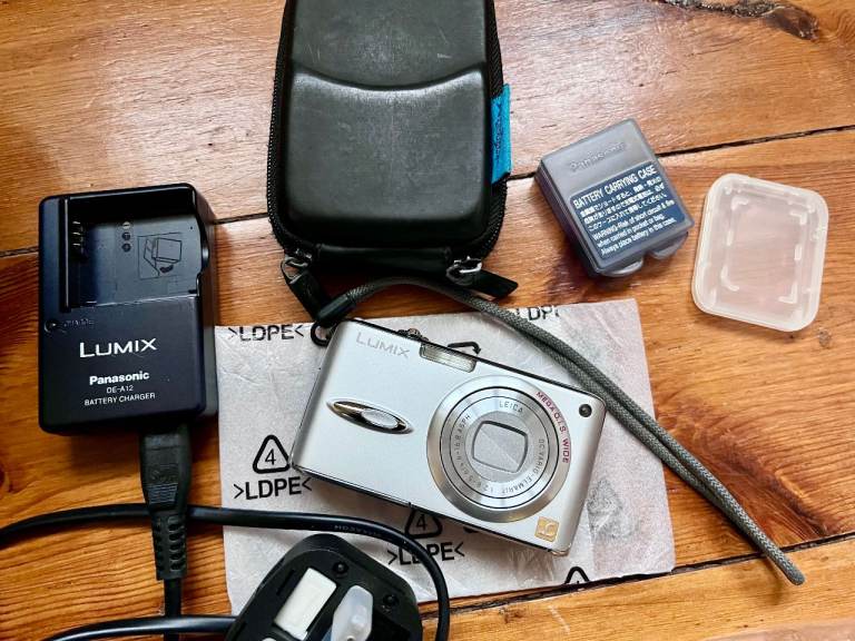 Fabulous condition Panasonic Lumix DMC-FX01 digital camera. From 2006, we have the original box and all accessories including battery re-charger, manual, CD, memory cards. Has been well looked after. At the time – 20 years ago, it was the world's smallest camera with a 28mm lens. A terrific combination of cool styling, compact dimensions, big screen and image-stabilised Leica lens. Other features include a high sensitivity mode (offering sensitivities of up to 1600) and a 16:9 widescreen movie mode. Lots of positive reviews online too.