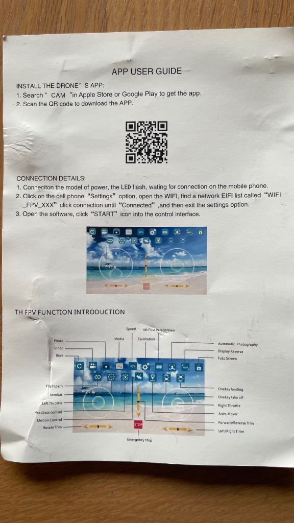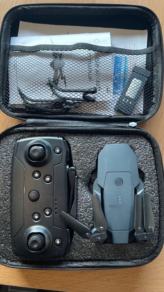 Never been used. Links with app shown for live feeds, comes in zipped hardshell case with two batteries, all cables, remote with phone holder. Nice introduction to drone flying.