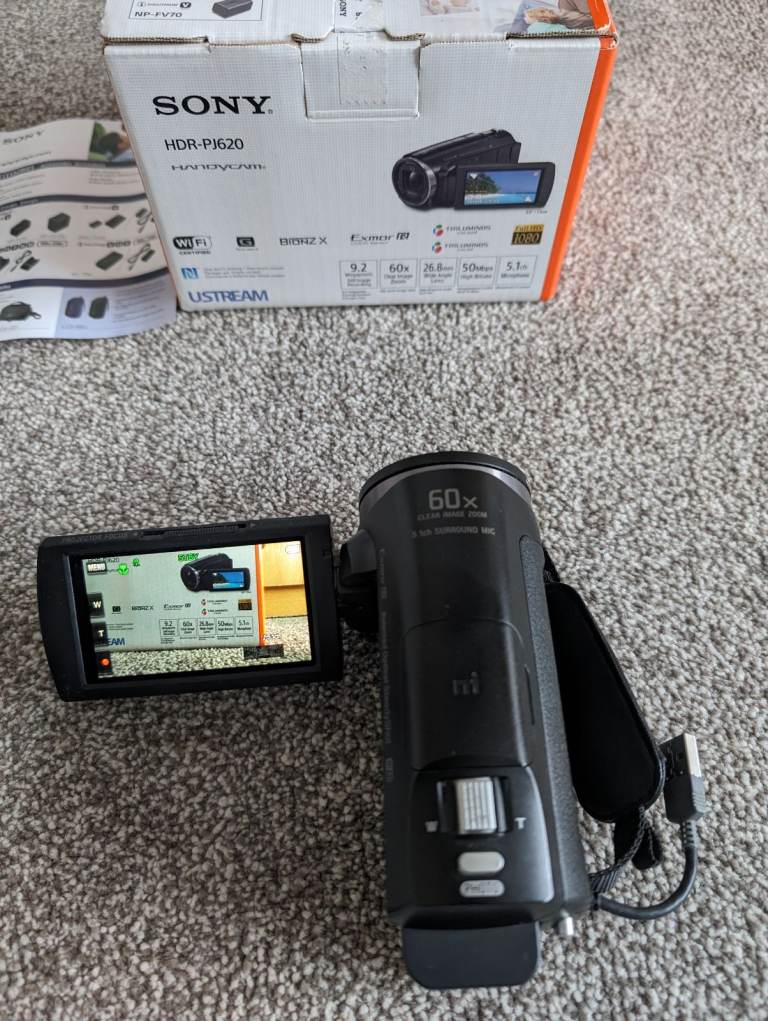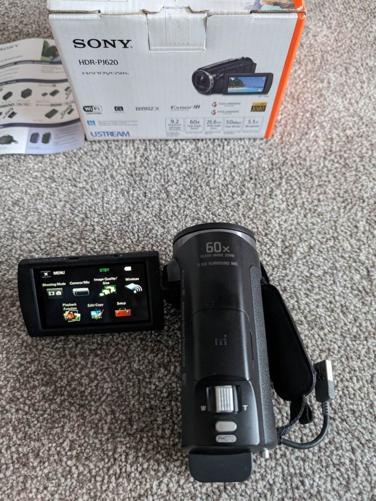 SONY HANDYCAM HDR-PJ620E with projector, touch LCD, external 64GB extreme speed card, fast charger.