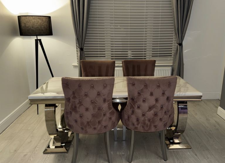 4 x Fabrice Ivory White Faux Leather Dining Chairs