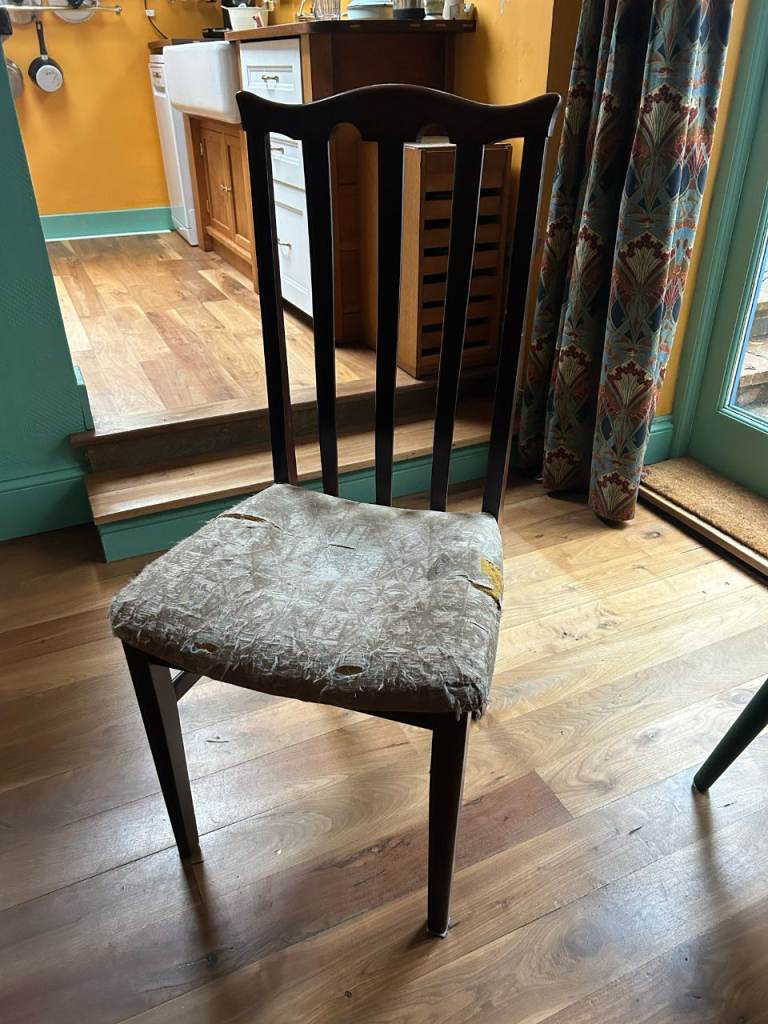 Posting for under a month2x Dining Chairs | Dark Wood | Reupholstery Project