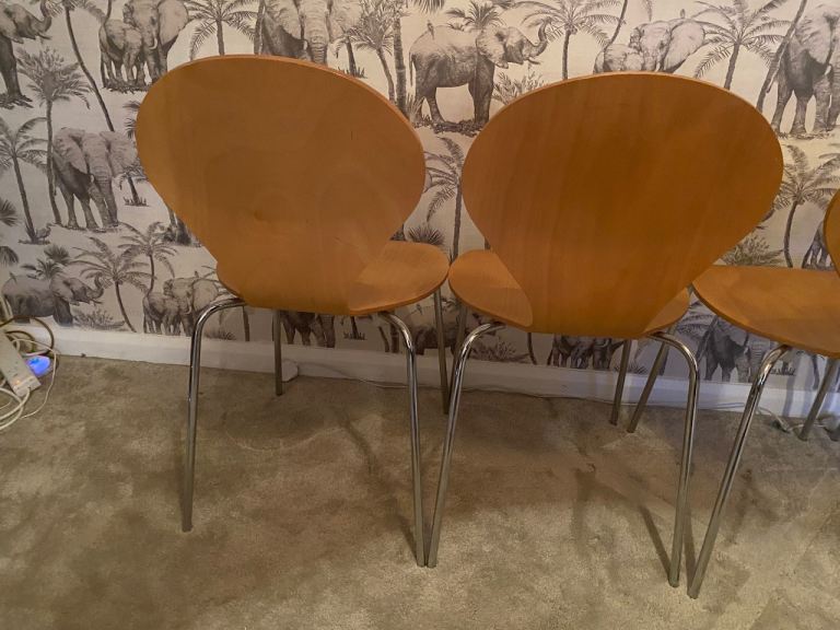 4 Danerka Ronda Danish dining chairs. In great condition. Chrome is good with no tarnishing/rust. Chairs can also be stacked.