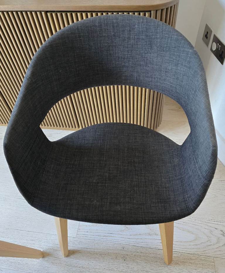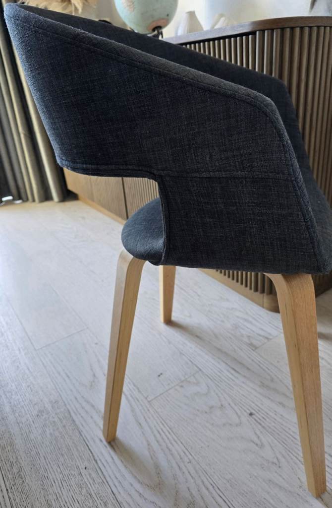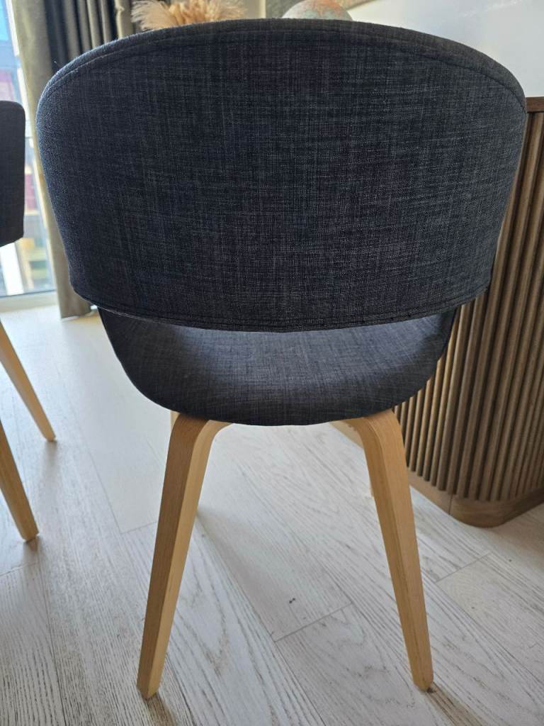 Bring comfort and style to your dining room with these modern upholstered dining chairs. Comfortable,Sturdy wooden legs, easy‑clean fabric, dark grey.
