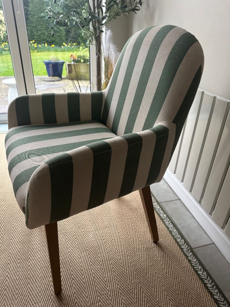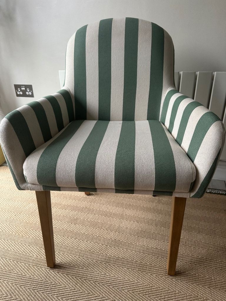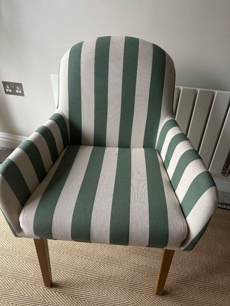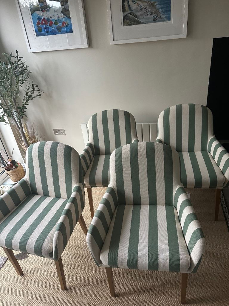 Posting for 4+ years4 Dining Chairs Dunelm Agnes Carver Olive Green Striped Fabric