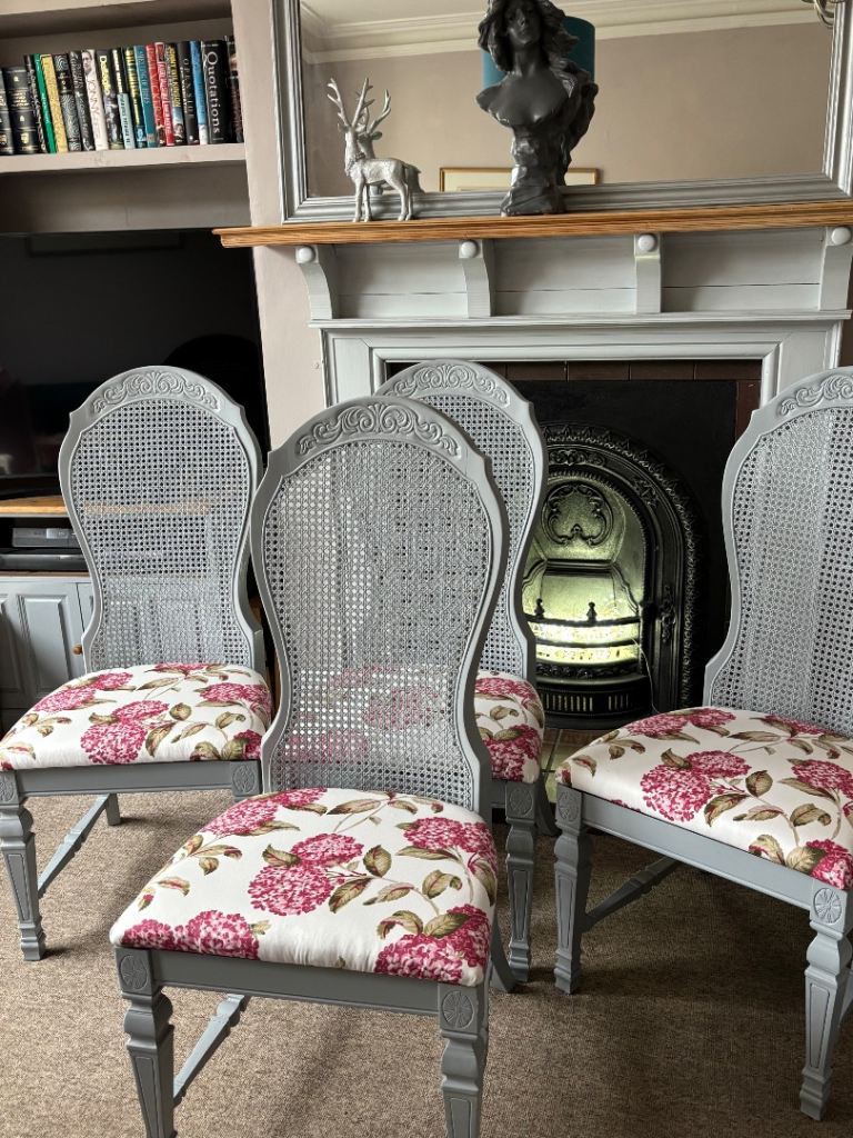 These 4 beautiful and rarely found chairs have been given fabulous makeover as a restoration project.