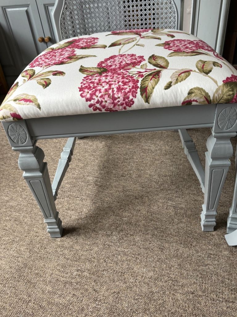 The original upholstery has been removed and replaced with current fire regs standard and covered with a stunning cotton upholstery fabric.