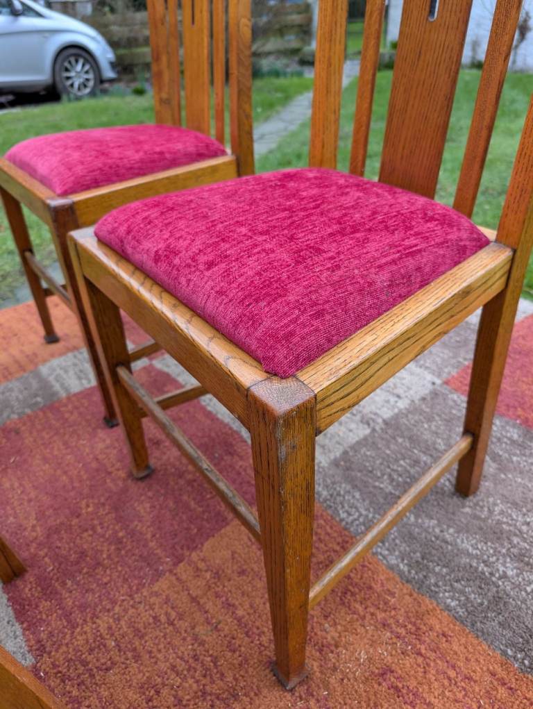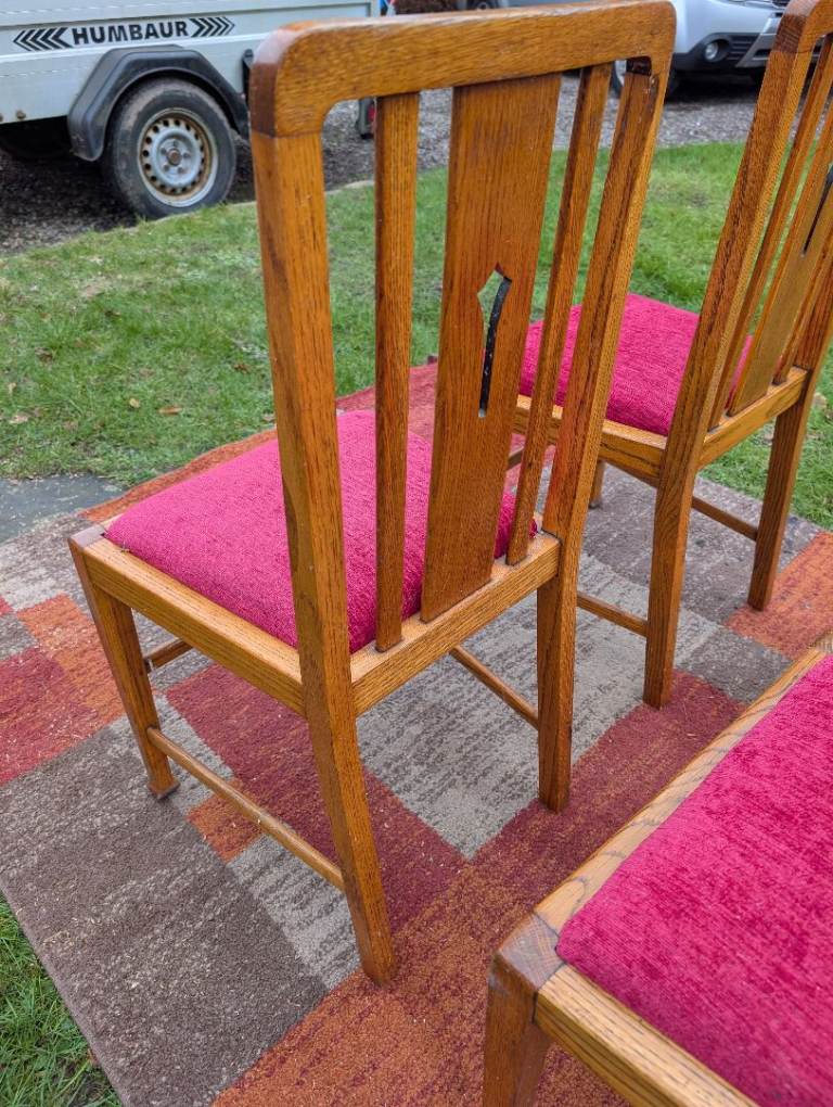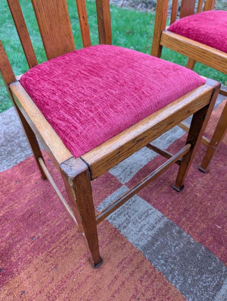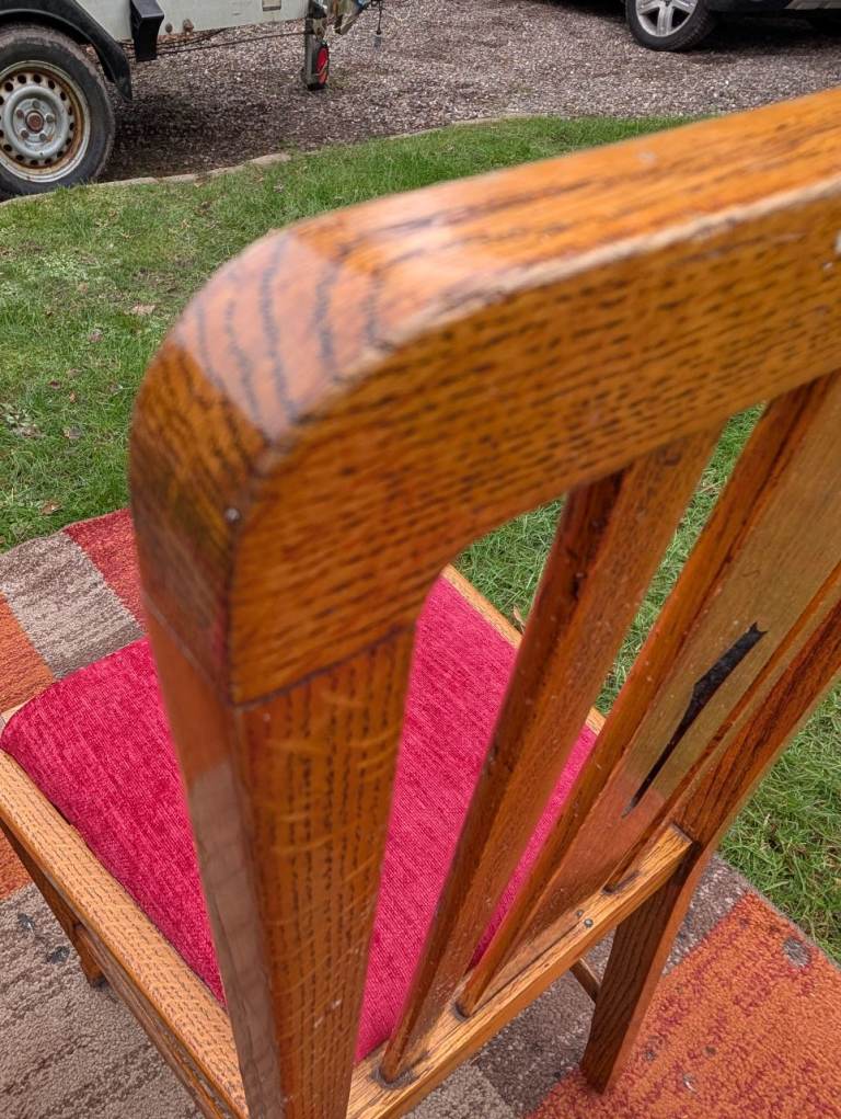 4 x Antique Oak Dining Chairs - re-upholstered..