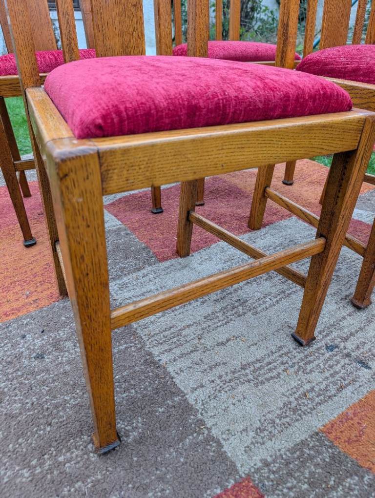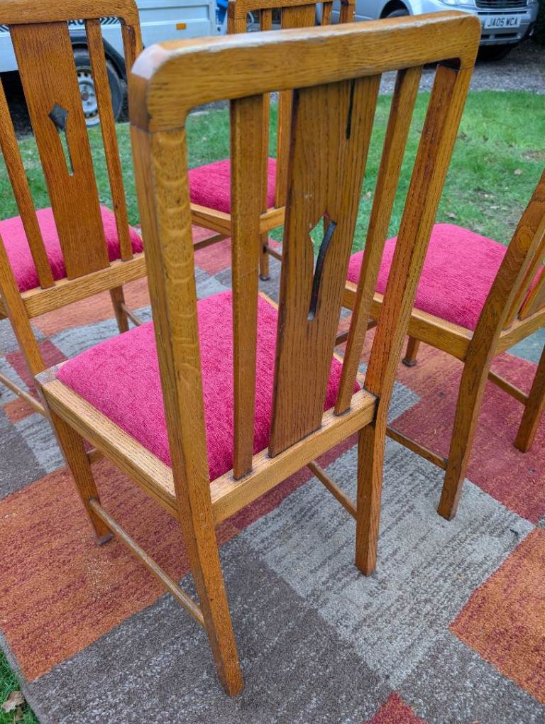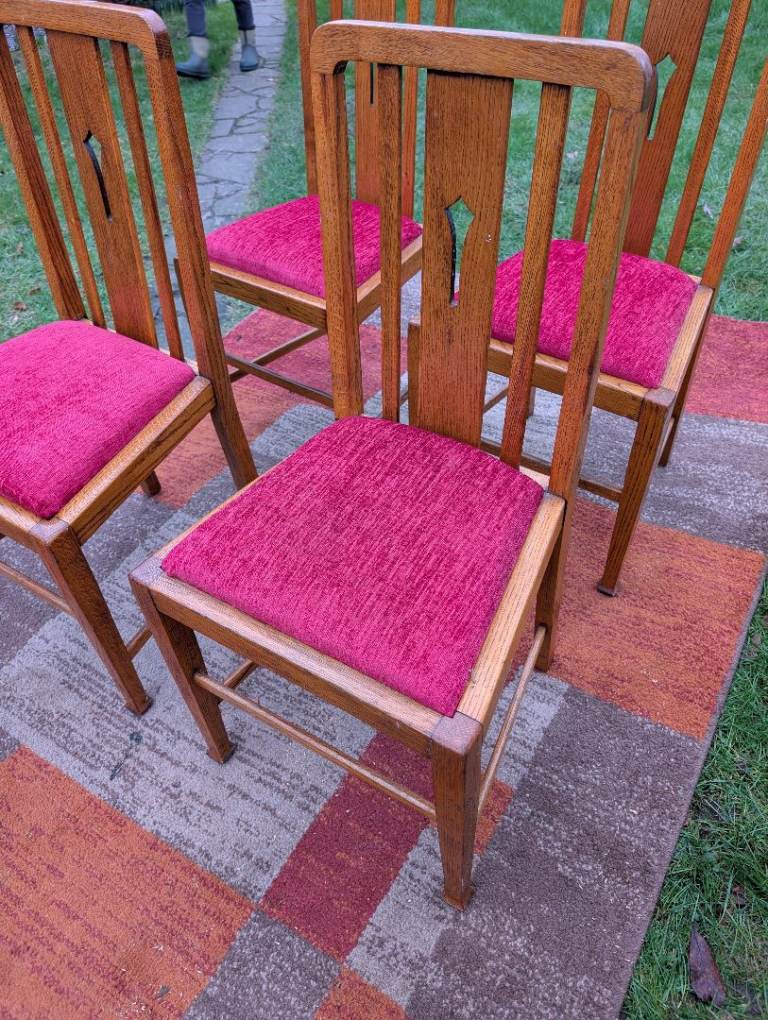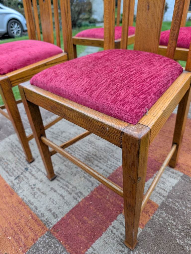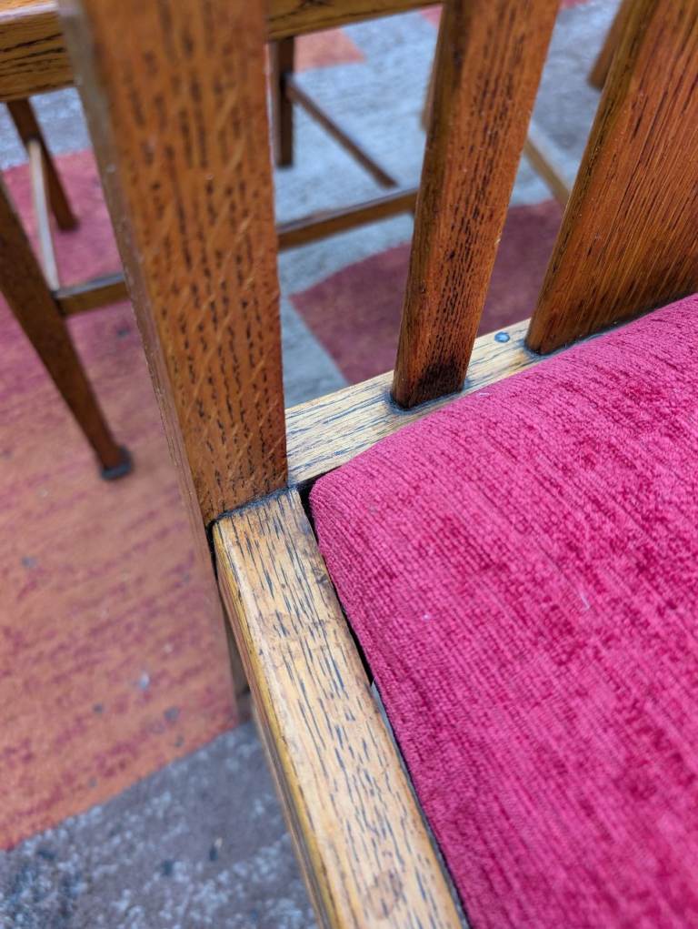 4 x Antique Oak Dining Chairs - re-upholstered..