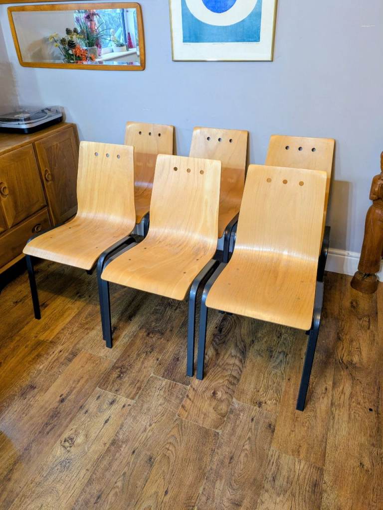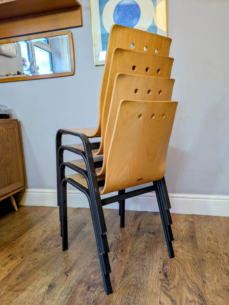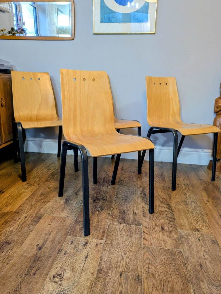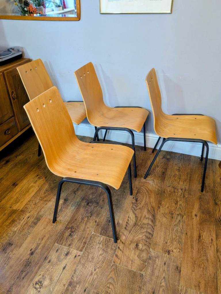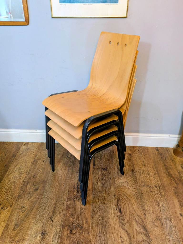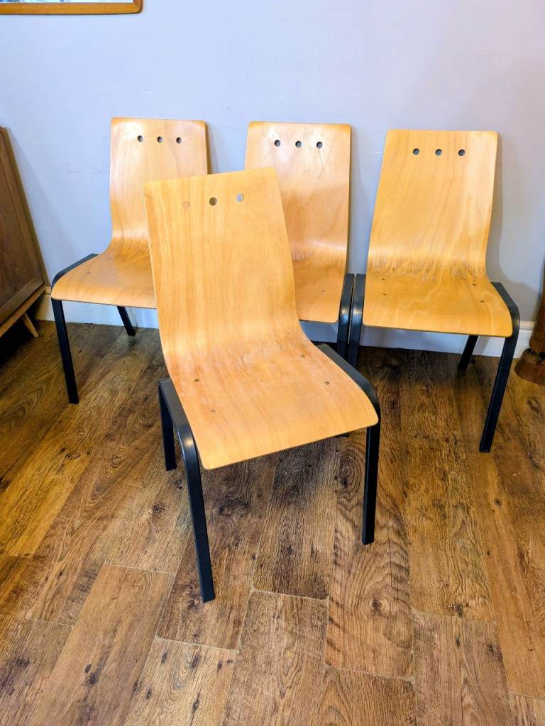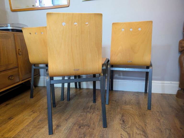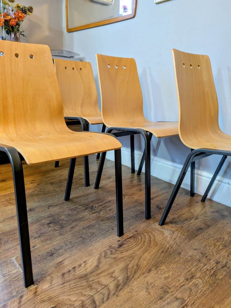 4 x Metal & Bow Ply Stacking Dining School Cafe Chairs Delivery Available