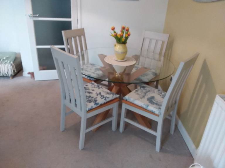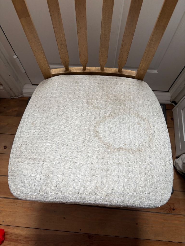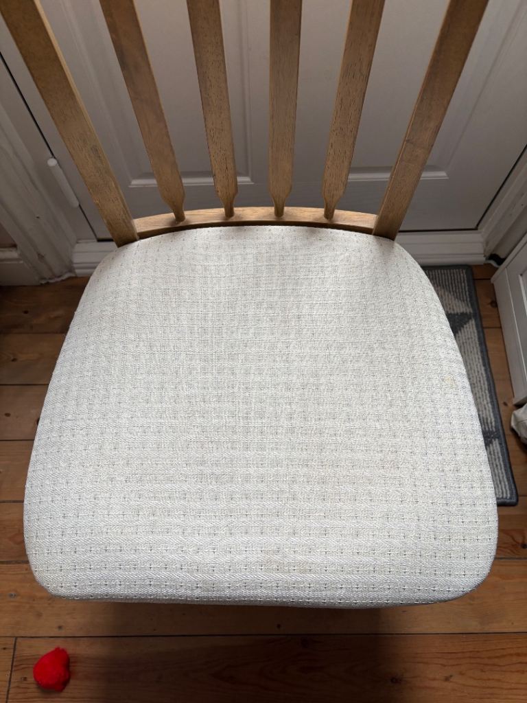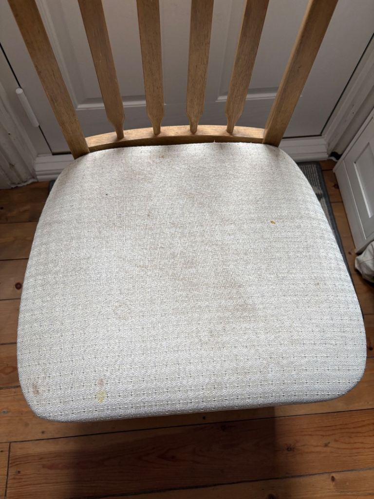 In need of being reupholster but there are very good quality wooden chairs, sturdy