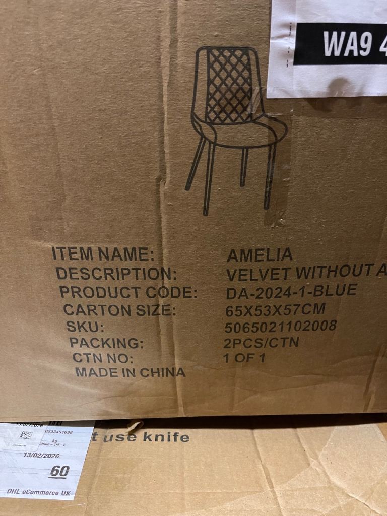 Brand new Amelia blue velvet dining chairs set of 2, also available in green, retail £160