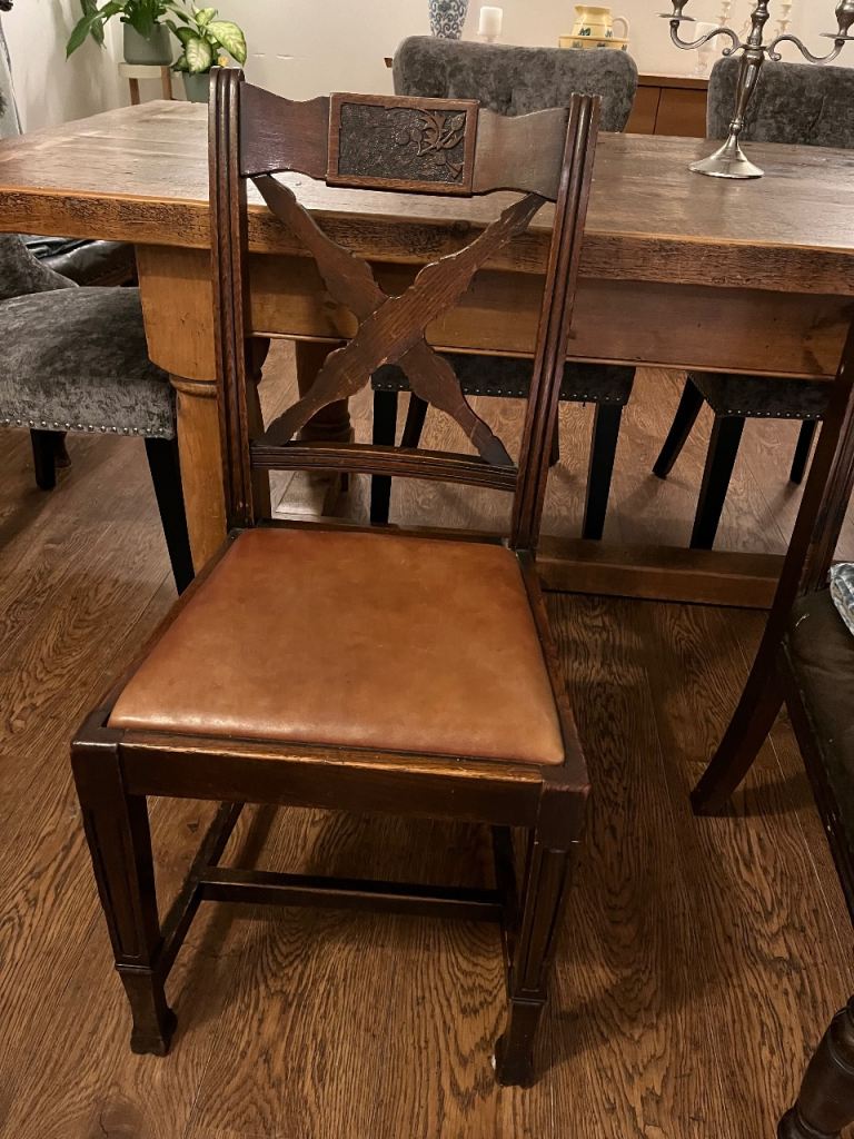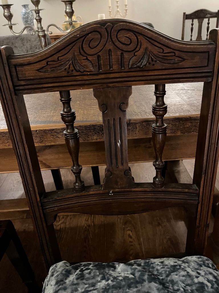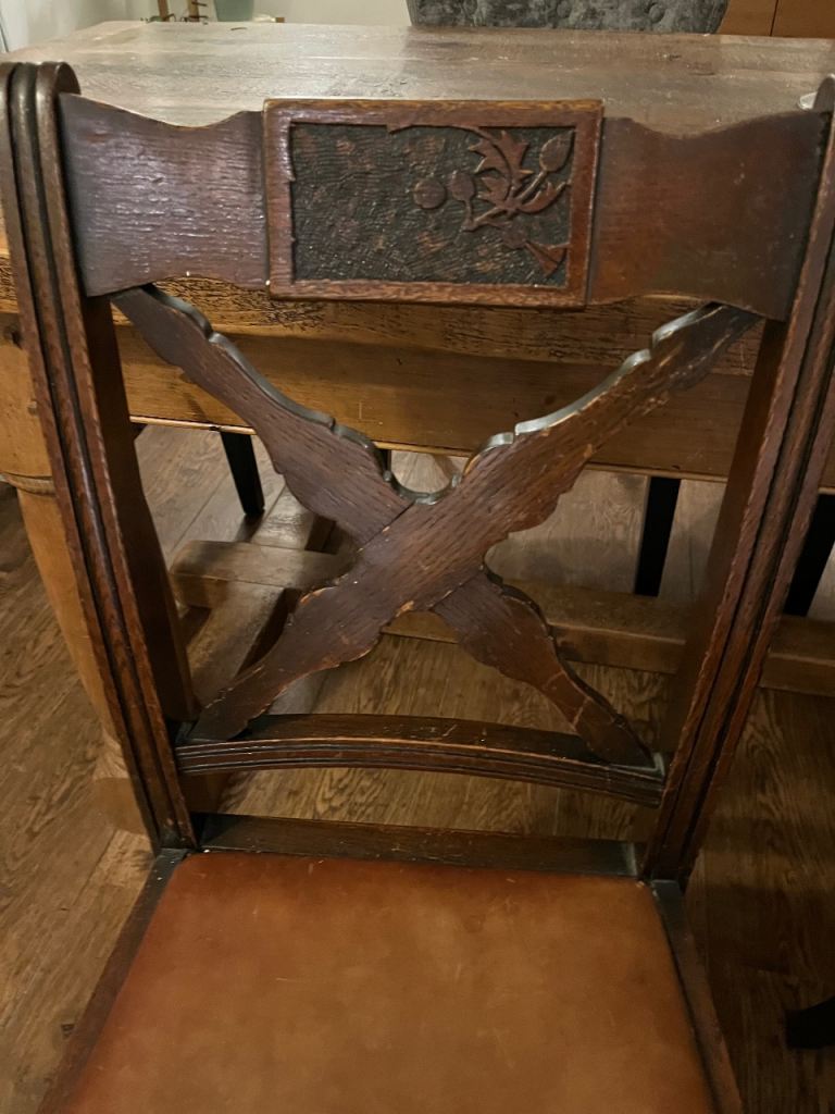 Posting for 1+ yearsAntique Oak Dining Chairs