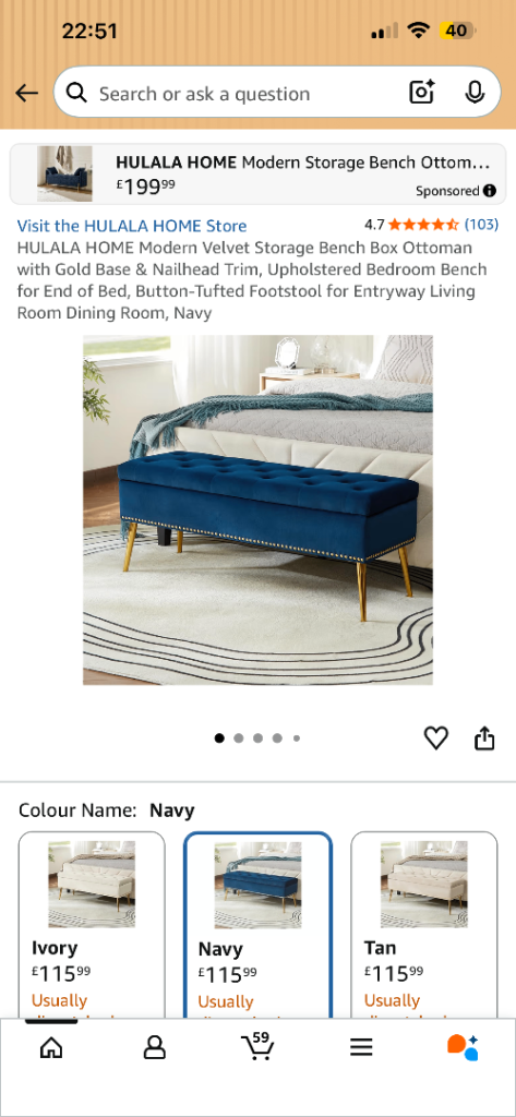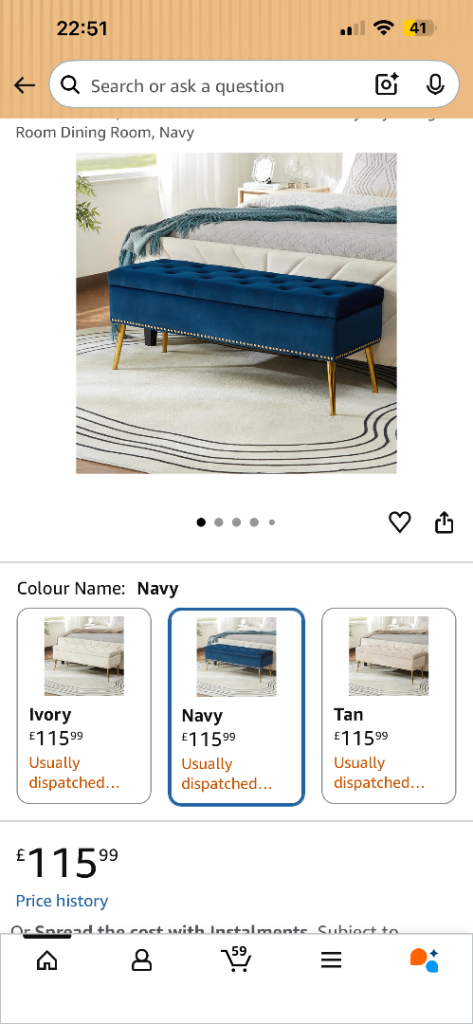 Dinning/Storage bench, new unopened - Navy blue