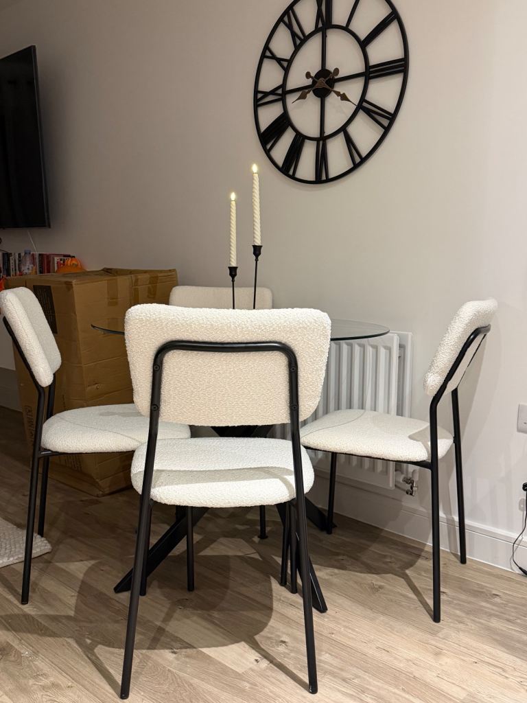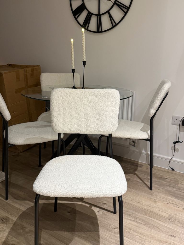 Posting for 3+ yearsBrand New Set of 4 Chairs (No Table) Dining Chairs - White Boucle Chairs Only