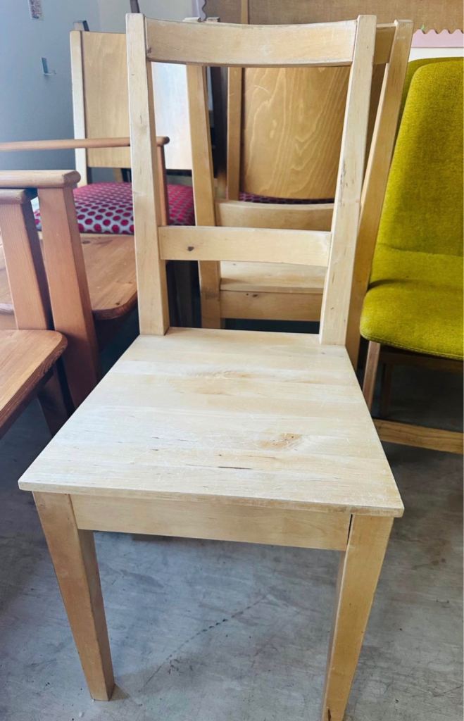 1x wood and red cloth chairs (worn) - £15 each