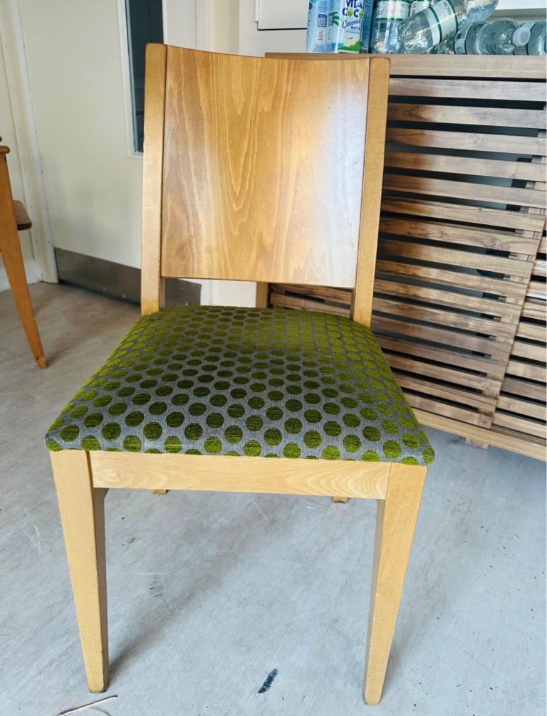 1x wood and green cloth chair - £20