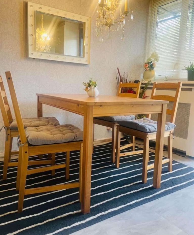 The set includes one armchair and two dining chairs, but can be sold separately.