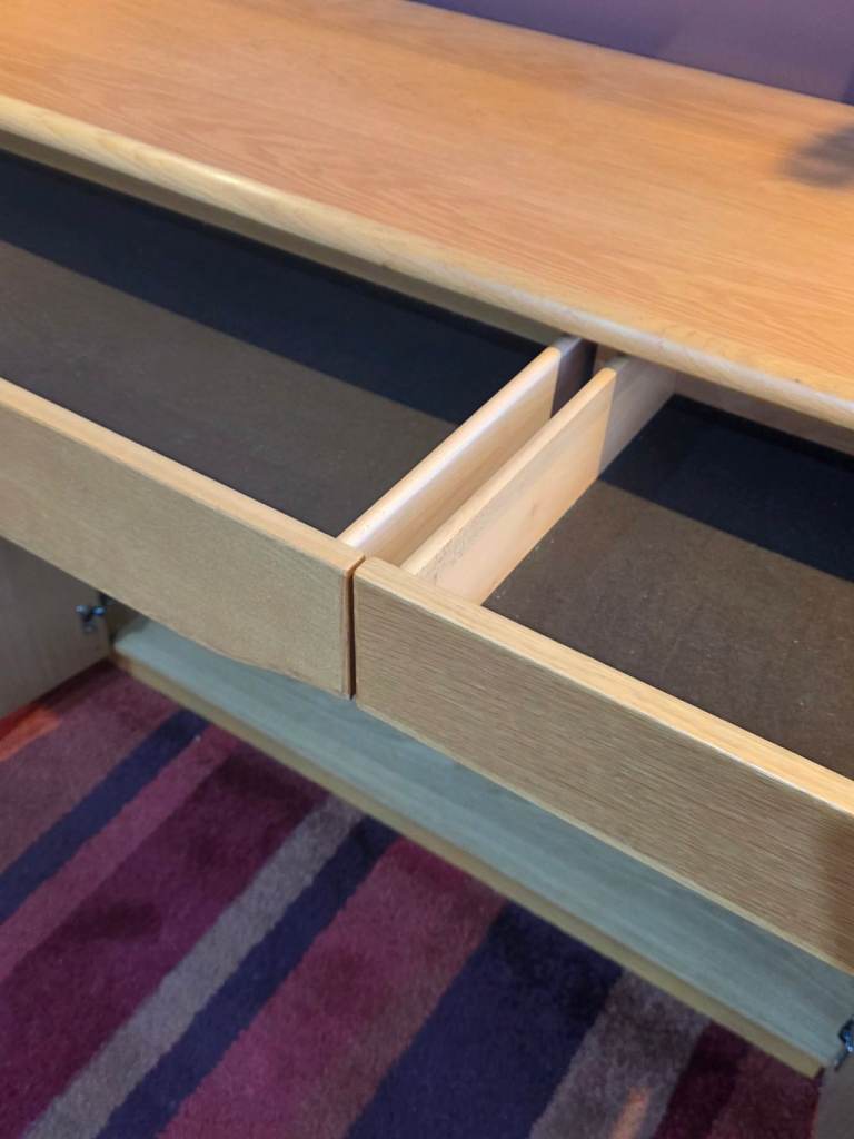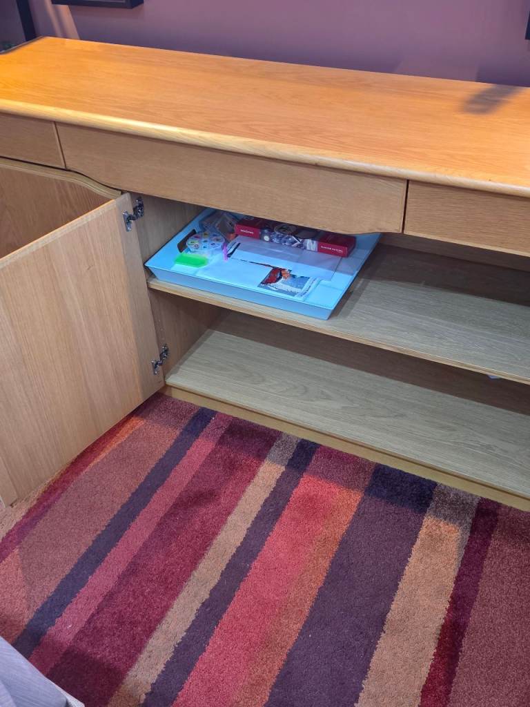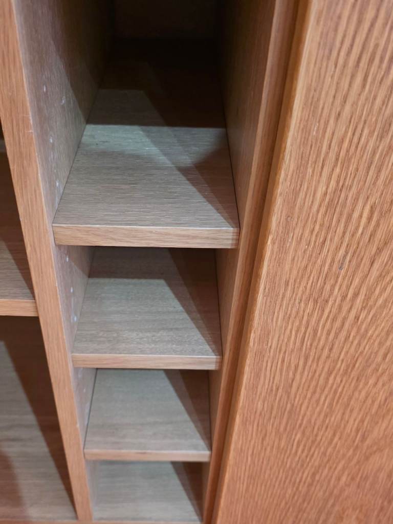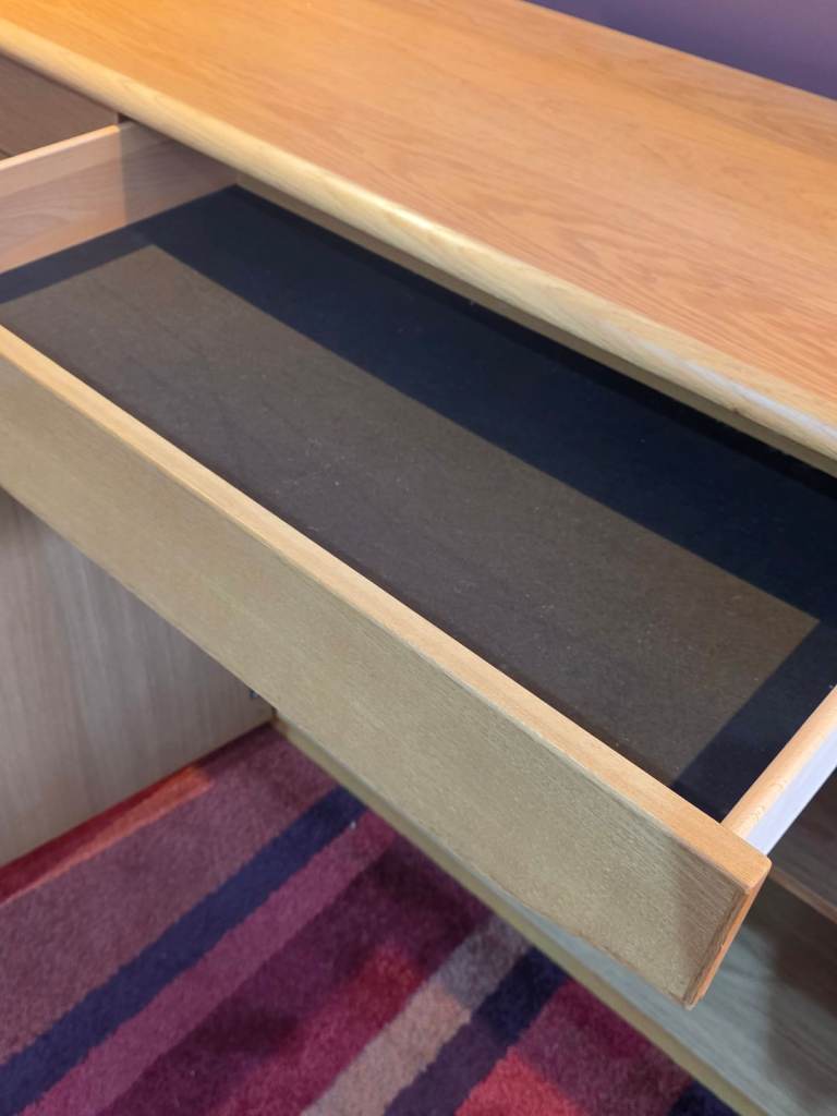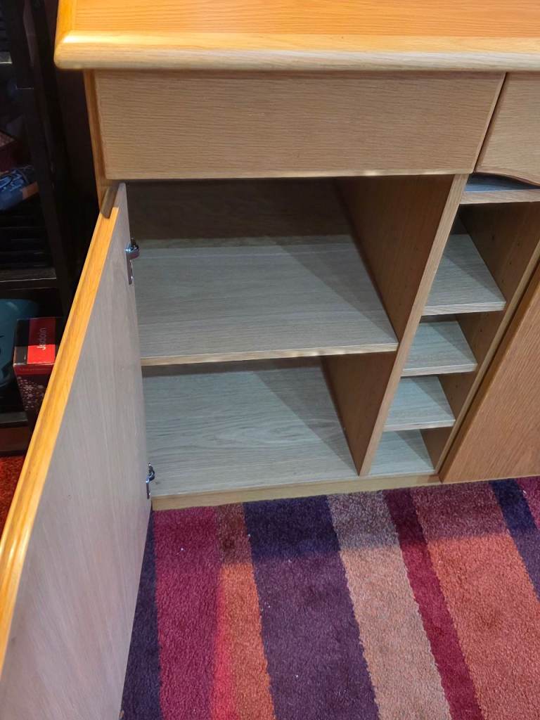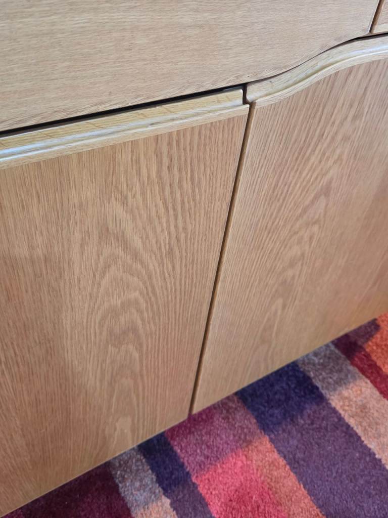 Danish Skovby blonde oak veneered sideboard, late 20th century, model SM303B BOG, with three drawers over three cupboard doors, revealing shelves and wine rack, label verso, 165.5 by 47.5 by 86.5cm high