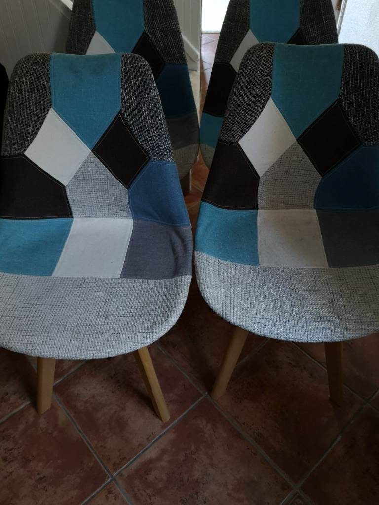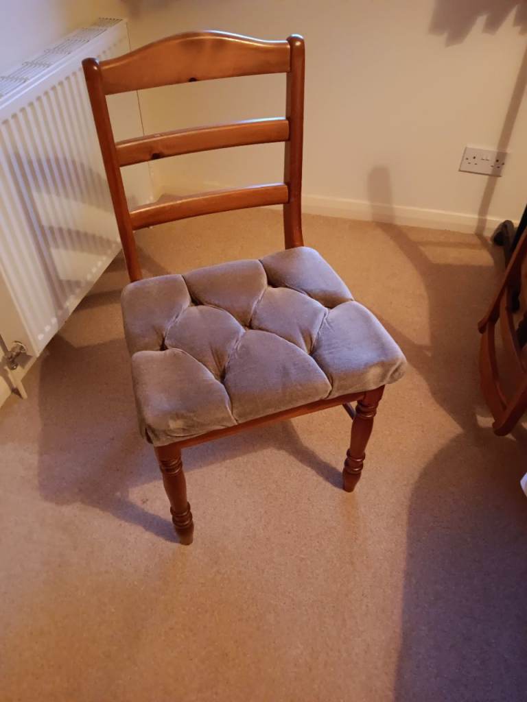 6 dining room chairs. Pine frames with fire resistant upholstered seats. Set of 6 £75 or will sell individually for £15 each.