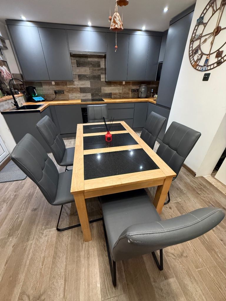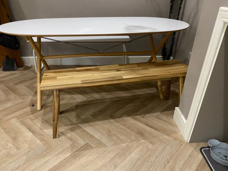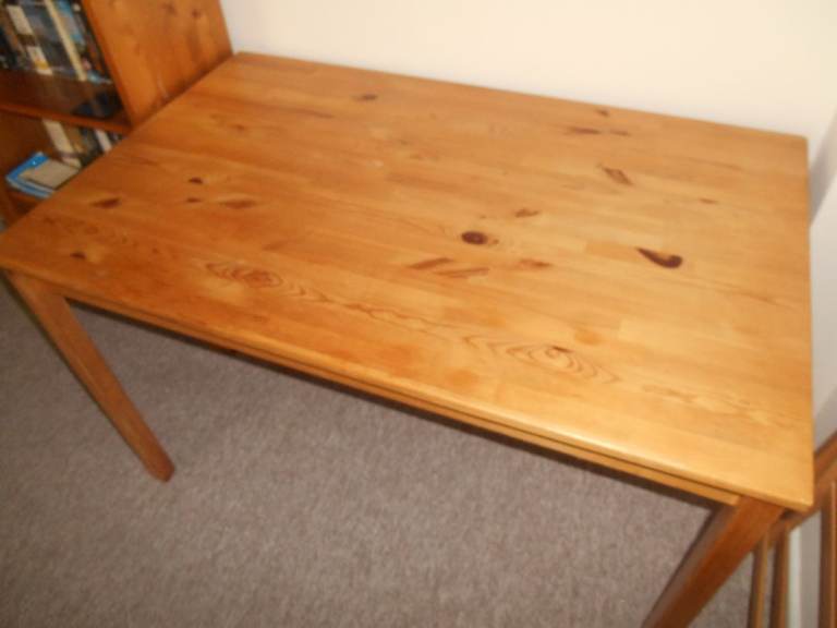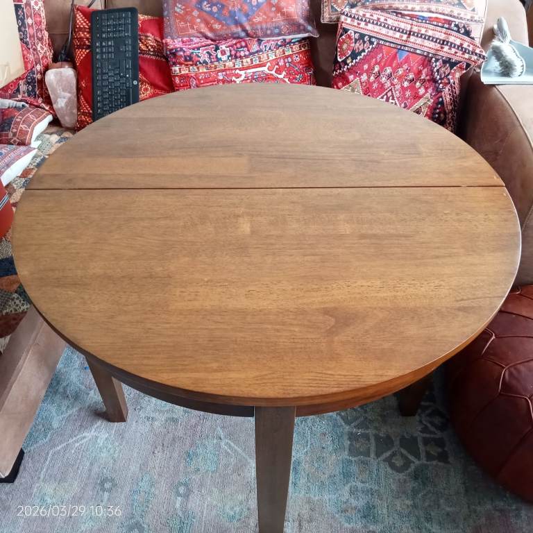 The table can act as a small 4 seater or extended 4 seater dinning table. It is in good condition with a few small chips and marks.
