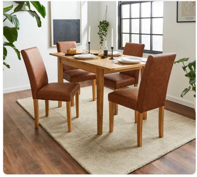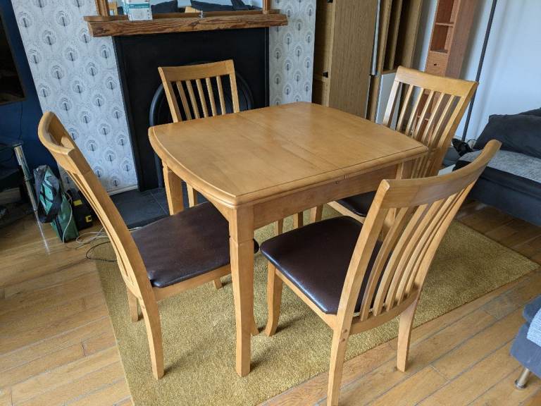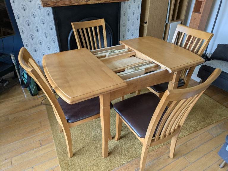 Extendable solid wood Dinning table and 4 chairs