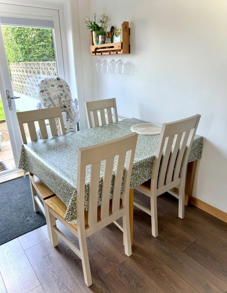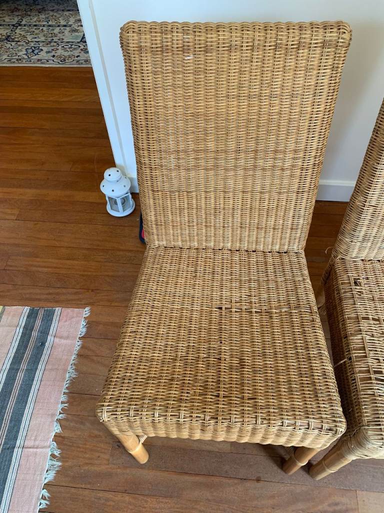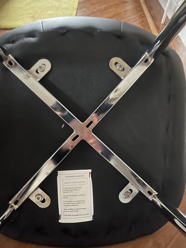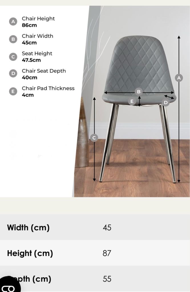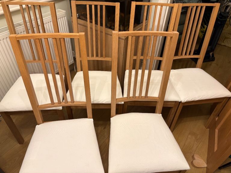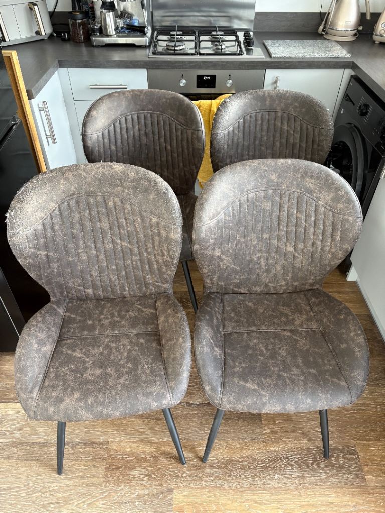 Barely used, excellent condition, faux leather. Lovely chairs, only selling as going for new colour scheme.