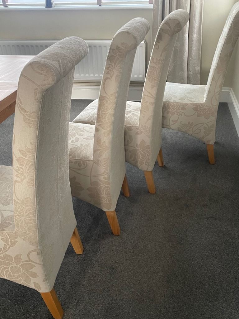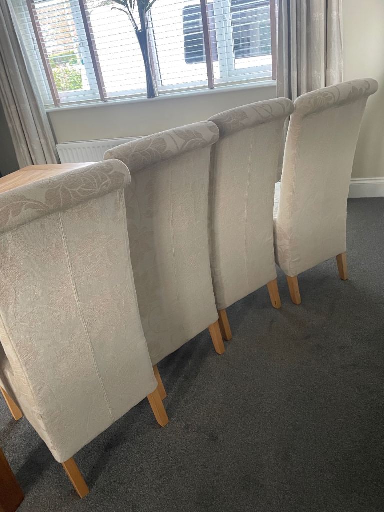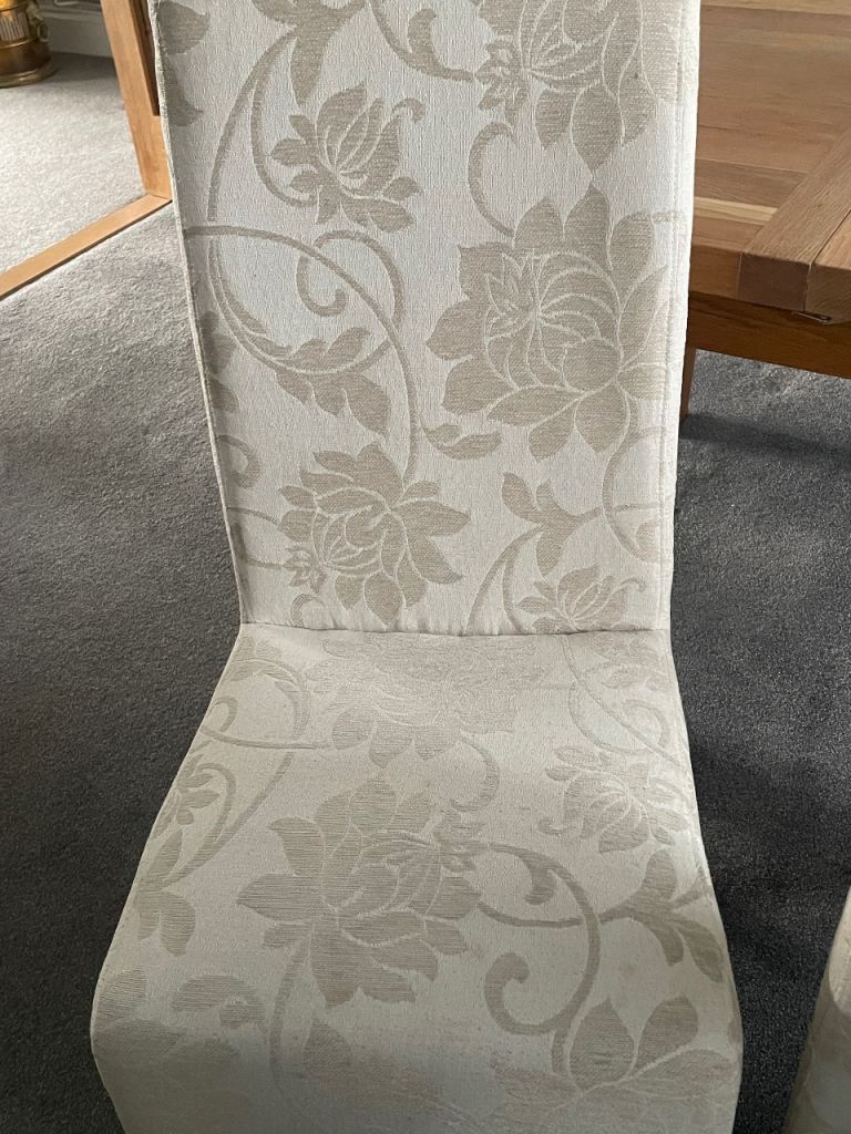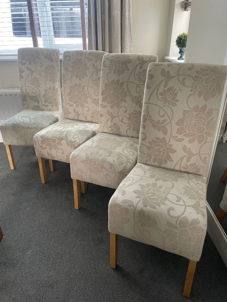 Four lovely cream with pattern within cream Dining chairs for sale.