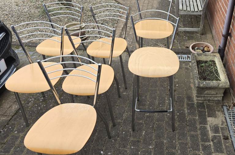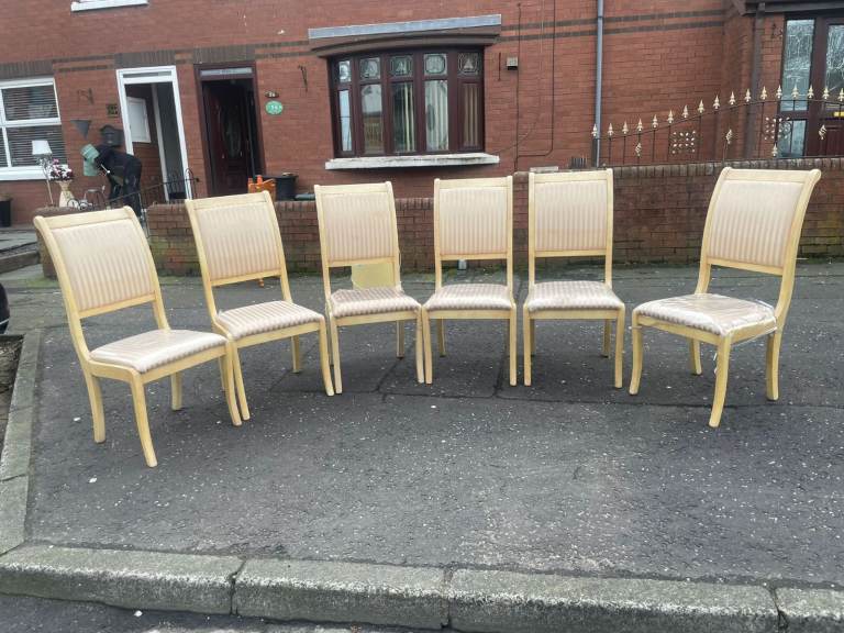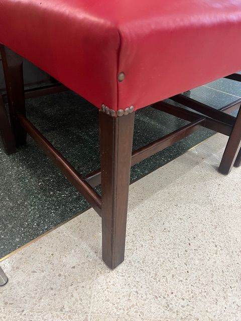 FOUR VINTAGE HORSE HAIR STUDDED DINING CHAIRS NEED TLC